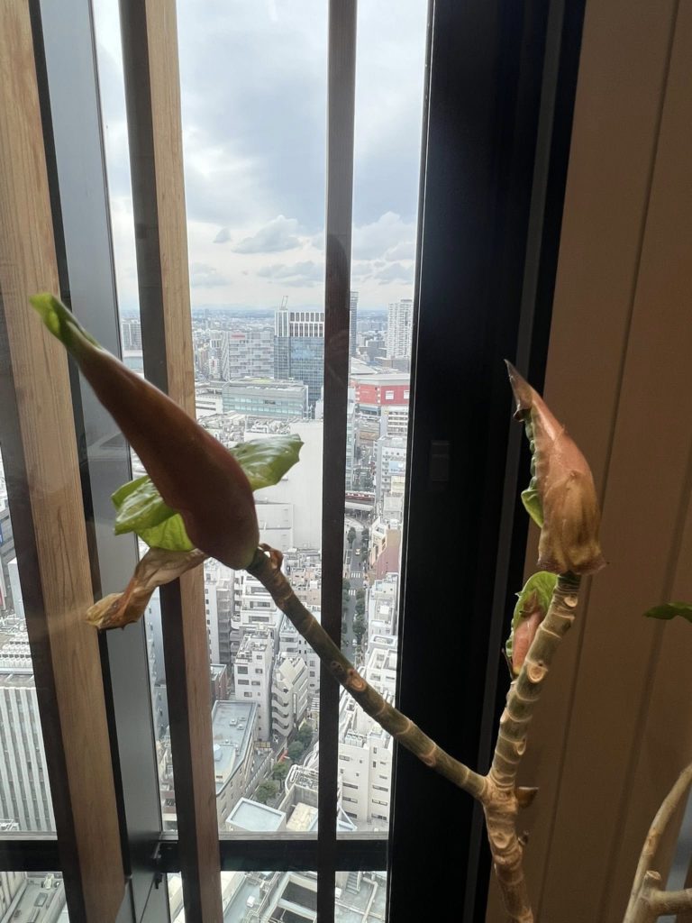 全て落葉していた控室の観葉植物は23階の風が入らない室内という植物に